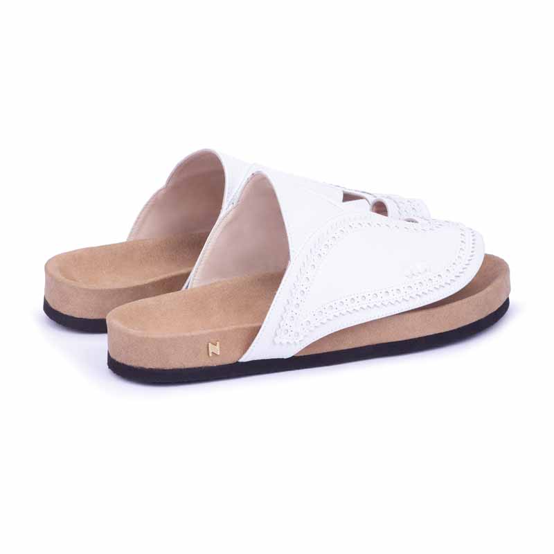 حذاء غرناطة الشرقي من ماركة نقوة المميزة. ينفرد الحذاء بتصميم يدمج عبق الماضي والحاضر حيث تميز التصميم بجلد عالي الجودة مما يحافظ على متانة وعمر الحذاء لفترة طويل ويعطي الراحة الكاملة اثناء ارتداءه والمشي عليه من ابزر مميزات الحذاء يتميز لون الحذء بدرجة اللون ابيض. البطانة الداخلية للحذاء تأتي جلد.وتتميز ايضا الطبقة العلوية بجلد طبيعي .باطن الحذاء مبطن لتوفير الراحه اثناء الارتداء.خيوط الحذاء مصممة خصيصا لتناسب الذوق.الحذاء تم تصميمه بشكل كامل يدوياً وتحت أمهر الحرفيين الارضية تأتي با اللون البني