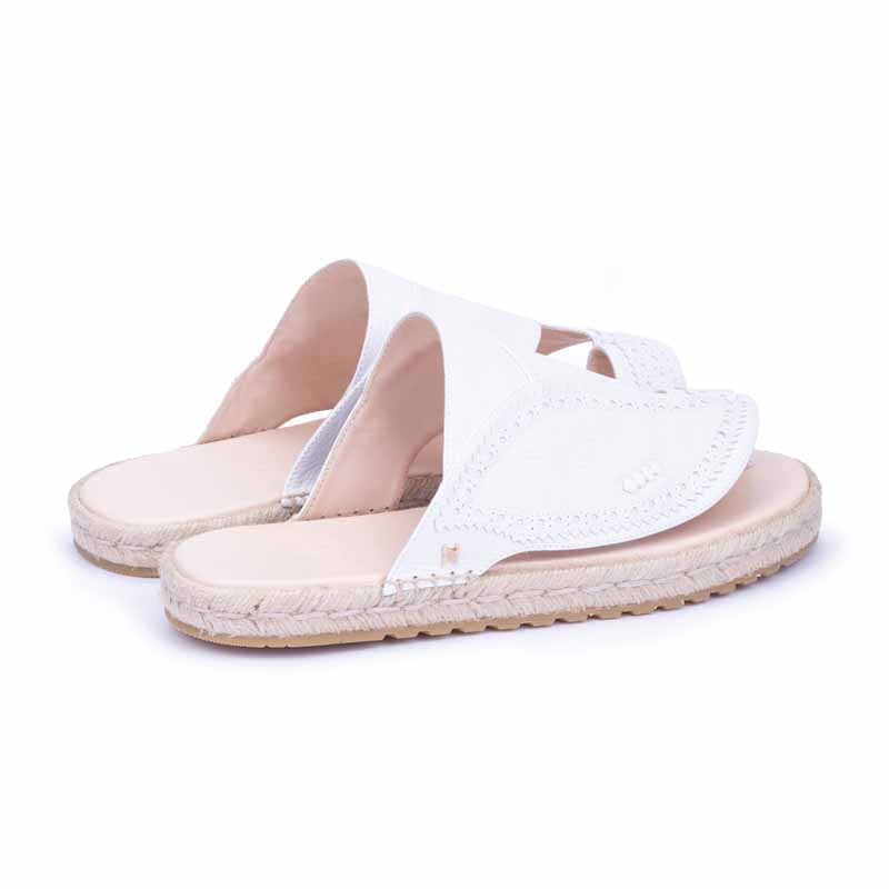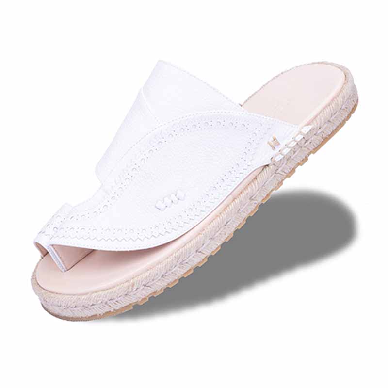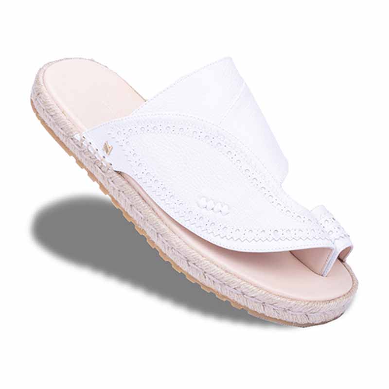 حذاء ماربيا الشرقي من ماركة نقوة المميزة. ينفرد الحذاء بتصميم يدمج عبق الماضي والحاضر حيث تميز التصميم بجلد عالي الجودة مما يحافظ على متانة وعمر الحذاء لفترة طويلةمن ابزر مميزات الحذاء لفترة لون الحذء بدرجة اللون الابيض .ارضية مزخرفة من سعف النخل البطانة الداخلية للحذاء تأتي جلد.وتتميز ايضا الطبقة العلوية بجلد طبيعي.باطن الحذاء مبطن لتوفير الراحه اثناء الارتداء.خيوط الحذاء مصممة خصيصا لتناسب الذوق.الحذاء تم تصميمه بشكل كامل لتغيير وتحت أمهر الحرفيين