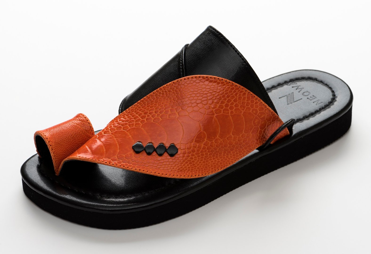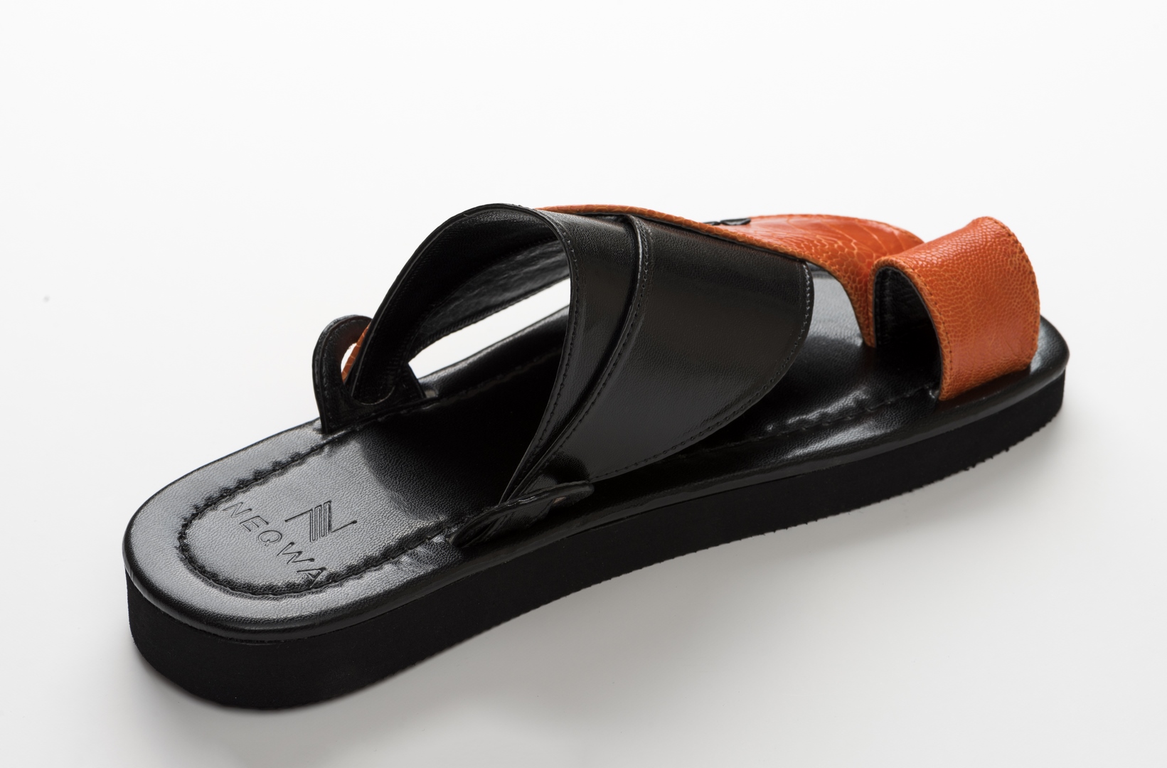 حذاء شرقي من ماركة نقوة المميزة. ينفرد الحذاء بتصميم يدمج عبق الماضي والحاضر حيث تميز التصميم بجلد عالي الجودة مما يحافظ على متانة وعمر الحذاء لفترة طويل ويعطي الراحة الكاملة اثناء ارتداءه والمشي عليه من ابزر مميزات الحذاءيتميز لون الحذء بدرجة اللون البرتقالي .البطانة الداخلية للحذاء تأتي جلد.وتتميز ايضا الطبقة العلوية بجلد ساق نعام طبيعي .باطن الحذاء مبطن لتوفير الراحه اثناء الارتداء الحذاء.خيوط الحذاء تأتي باللون الاسود.الحذاء تم تصميمه بشكل كامل يدوياً وتحت أمهر الحرفيين